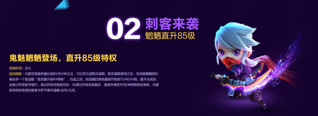 别担心,鬼魅魍魉登场,直升80级特权!直升完成后,会跳过所有新手指引,跳过所有低级别任务,SS通过所有低级副本,直接升级匠作司/神树到相应等级,获得相应级别的装备与若干基本道具/金币/元宝。妈妈再也不用担心我的升级之路啦~