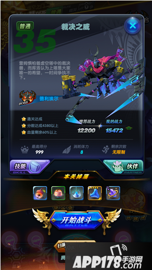 本关的BOSS是德利埃尔,这个BOSS技能丰富、特效华丽,相信所有挑战过他的玩家都对他印象深刻。BOSS释放出细长的红色激光后,会用它发动扫射,此时我们需要顺着其滑动的方向,移动到屏幕边缘进行躲避;除此以外,这个BOSS还拥有许多独特的技能,这里先不逐一列举了。对我们而言,德利埃尔最可怕的地方在于,虽然他已如此强大,但当他血量低至四分之一时,他竟然也会召唤紫色骷髅!