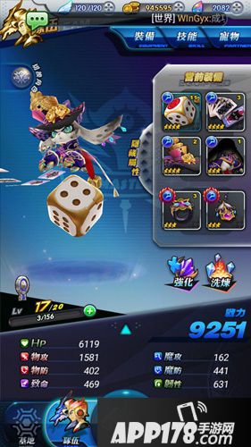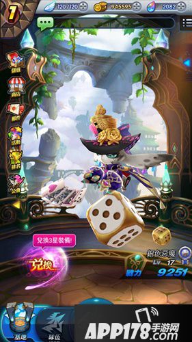首先晒一下我可爱的法师 =V= 目前战力只有9251,这个是基地画面,上方那三个东东是你的资本(俗称三围(误,体力打关卡、金币强化用、彩晶买东西寻宝。