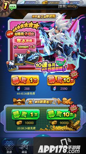 最后一个就是分辨非洲跟欧洲的地方(误) 来这边可以消耗彩晶或是金币寻宝,10连寻宝可以打9折并必出4星装备,但是目前我还没存到足够的彩晶,没办法秀一下QAQ