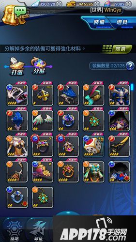 虽然说背包的装备上限有125格,但通常是不太会累积到上限,所以常常会忘记要来整理背包,记得一段时间先将三个职业都穿上最高的装备之后,多于的装备都来背包这边分解掉,分解装备可以获得装备强化石。