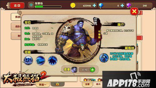 汉克作为《太极熊猫》中的标志性武神,也是《太极熊猫2》中雇用兵团的主力之一,有着非常恐怖的爆发力。属于物理型攻击英雄,可以眩晕,以及经典变身技能。在野外团战和副本中时,汉克的冲撞眩晕可以起到关键性的作用哦!