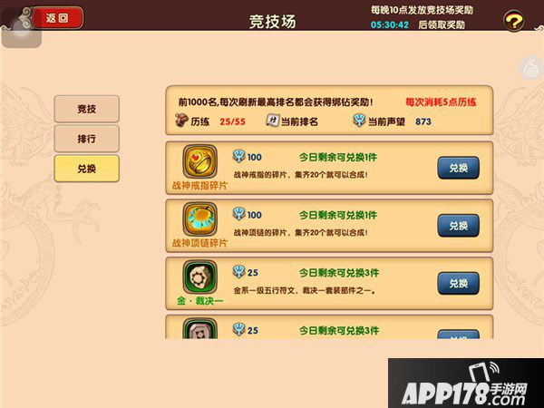 另外在竞技场中副将是非常好用的英雄,玩家都会有两组副将可以装备,副将是不受玩家控制的可以自行进行攻击的,所以副将可以帮助玩家拖住对手而且有的时候还可以给敌方主将造成重创,而且组一副将死亡之后还可以在切换到组二副将来帮助玩家继续作战,就这样打持久战就可以获得对战的胜利。