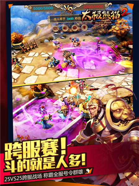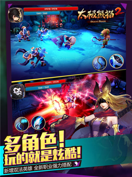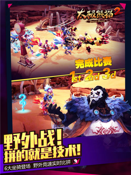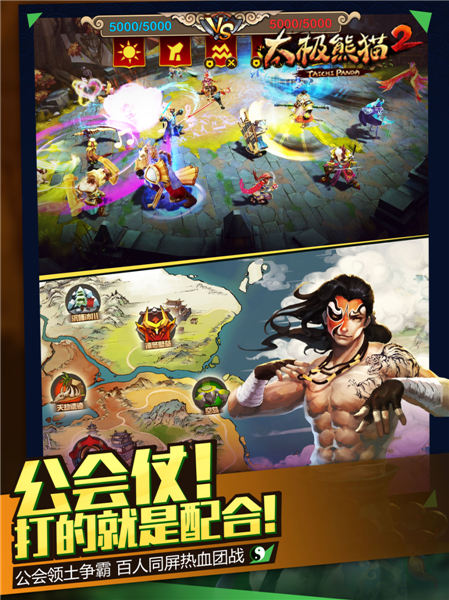 《太极熊猫2》作为《太极熊猫》的正统续作,不仅传承了前作的精良品质,还在传统动作手游的基础上融入诸多创新玩法。采用多角色切换设定,玩家可以自由切换主控角色,数十位英雄一手掌控,彻底突破了传统动作手游的职业限制;开拓全新大世界玩法,将玩家从狭小的副本空间解放到野外大地图,押镖夺宝肆意PK,百人同屏群战BOSS。而在此次开放的首部资料片中,大世界MMO化元素得到进一步强化。两大法系英雄强势来袭,跨服战队赛3VS3平衡竞技,25VS25浴血大战场,荣耀军衔系统首发,公会争霸热血团战,新增酷炫坐骑,纵马竞技驰骋疆场,同时还有各种新版活动,海量福利惊喜不断!