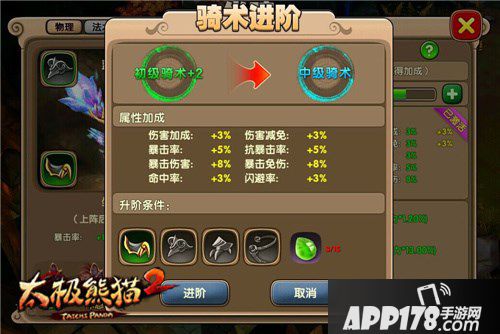 骑术等级对应的属性为右侧面板的绿字部分生命值和攻击力,骑术等级越高属性加成越多。玩家可以通过副本掉落获得骑术技能书,使用后可获得经验并提升骑术等级,但是骑术等级的上限不得超过英雄战队等级。