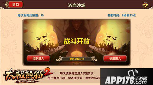 浴血战场的开放时间为11:00至22:30之间,每个整点都会开放一轮,一轮时间为20分钟。玩家一天有2次战场机会,建议玩家提前做好准备,准点进入战场,不然过几分钟很可能就进不去了。当然,如果当天错过了战场也不要紧,战场次数会自动累加到次日,上限为12次。