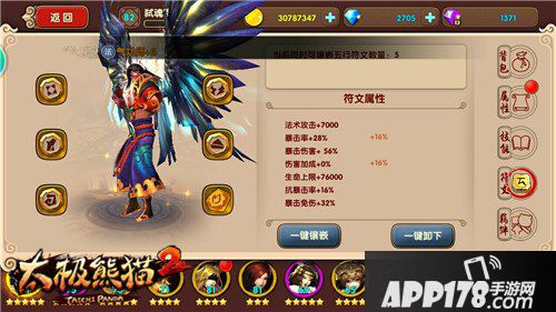 在当前版本中,玩家如果不刻意去堆暴击率的话,应该普遍在400左右,高级玩家可以堆到500以上,稍高于抗暴击属性。但是如果玩家拥有橙色抗暴击率附魔,完美的情况下每一个提供100抗暴击率,总共705抗暴击率!基本上没有人可以对你打出暴击伤害,就算暴伤属性1000+也只是摆设。更多精彩内容,请关注《太极熊猫2》官方网站及微信公众号!