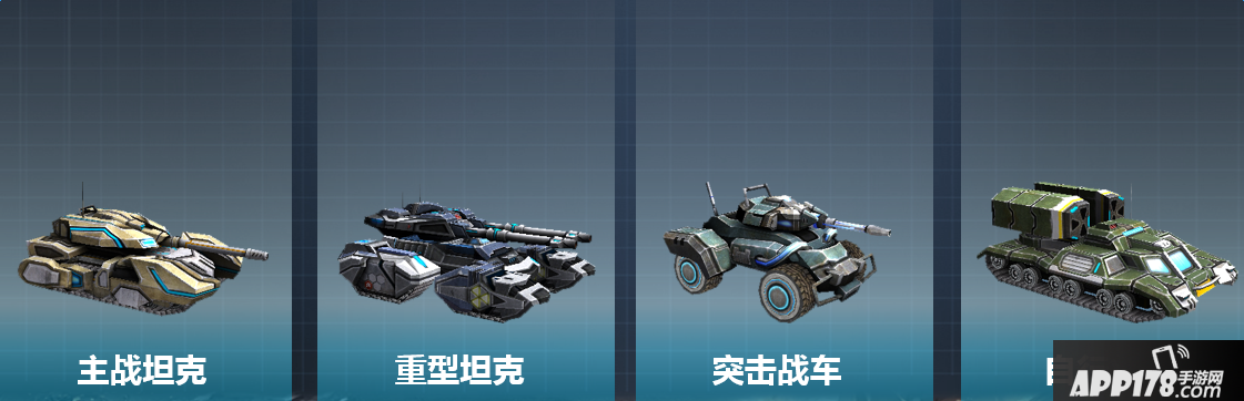 游戏中坦克分为重型坦克、主力型坦克、突击装甲车和自行火炮4种不同类型,在战场上将各司其责,进行协同作战取得最终胜利。