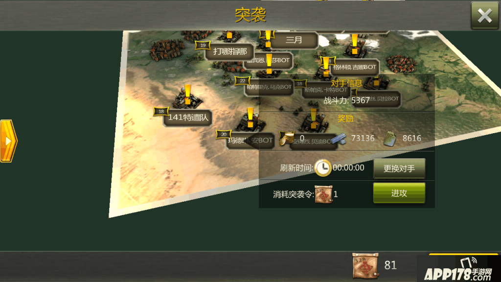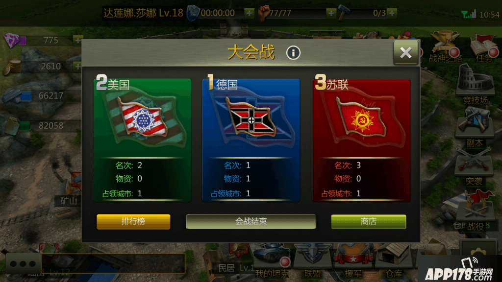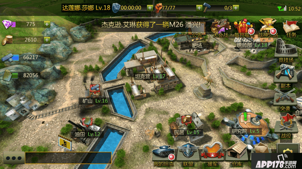 基础内容的话建筑升级可以提升等级上限,增加资源收入,提高城防建筑可以减少被突袭时的损失,建筑升级消耗资源,副本可以获得金币钢铁石油将领,扫荡战役关卡可以获得零件,战斗失败坦克需要消耗石油来修复等等,终之基础系统内容的话还是很完善合理的。下面详细说说作为一款策略游戏,玩家之间的交互系统做得如何。