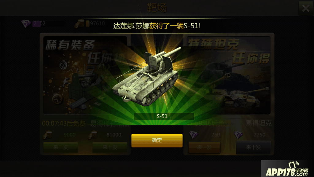 B,坦克的获取方式有建筑里的研发,以及在竞技商店和联盟商店获取碎片进行合成,靶场花费砖石有较大机会等到完整的s属性坦克。如果正式公测的话,没有内测的各种福利,除去靶场的砖石抽取坦克,笔者认为想要获得一俩属性很好的坦克还是要花费许多精力的,适合慢慢玩的收集类型。