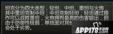 A,首先坦克共分为轻型坦克、中型坦克、重型坦克、自行火炮四种,根据坦克的性能,攻击力和防御力来体现表面的压制关系:火炮大于重坦大于中坦大于轻坦,但由于机动性的优势,轻坦可以反向压制重坦,所以要依据敌方坦克具体情况和地形有选择性的培养自己的坦克。