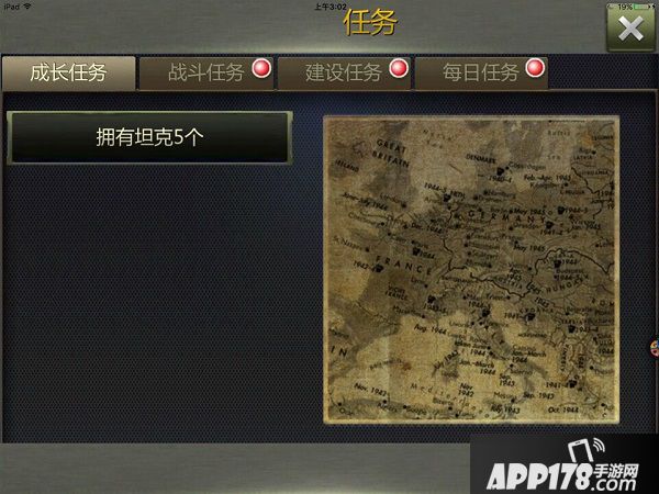 成长任务:初期成长的任务是手机五个坦克,奖励是XP+3;