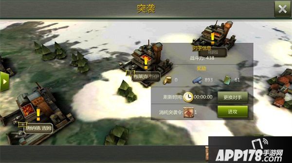 点击主屏幕右下角的突袭图标,就可以进入选择突袭对手的环节,在这里,我们可以查看各个对手的等级和可以突袭到的资源数量,目标是资源尽量多的对手。当然也要注意对手的战斗力,太高了打不过可就不好玩了,觉得没有合适的对手,此时也可以选择更换对手。