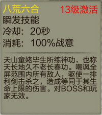 看过电视的小伙伴应该知道天山童闹和逍遥派的恩怨纠葛吧,所以这个技能仍旧出自逍遥,天山三大杀招之一,迅疾难防。在敌群中穿梭攻击6次,每击造成135%的外功攻击伤害。并使4秒内闪避提高50%。非常实用的一个技能,冷却C一般,杀怪boss怎可少它?