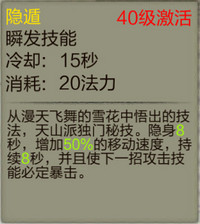 刺客的必修技能,怎能少了隐身呢!隐身8秒,增加50%的移动速度,持续8秒,并且使下一招攻击技能必定暴击。这个技能是使用大招的前奏,咱不能浪费着必定暴击的作用啊!