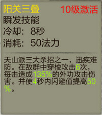这个技能可以说是脱胎于逍遥派,是天上排的必备基础技能,天山三大杀招之一。连续快速攻击敌人三次造成200%的外功攻击伤害。是PVP和打boss的常用技能。