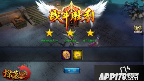 首先,“探墓”副本是游戏的主体关卡,玩家在过关后会根据闯关信息进行星级划分,满星为3星,而影响星级的条件分别为“是否杀死BOSS”“是否在规定时间内通关”“通关血量”以及“是否不死通关”4种,不同的关卡设立的星级条件也不尽相同,但不可否认的是3星通关所获取的奖励及经验实在是颇为丰厚。