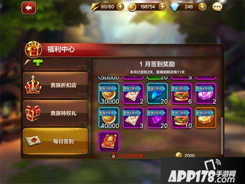 另外,贵族在签到还有额外的奖励。不同的贵族等级获得的奖励也不相同,玩家们可以在签到图上清楚的看到。如果想要多获得签到奖励的话,可以充值变成贵族哦。