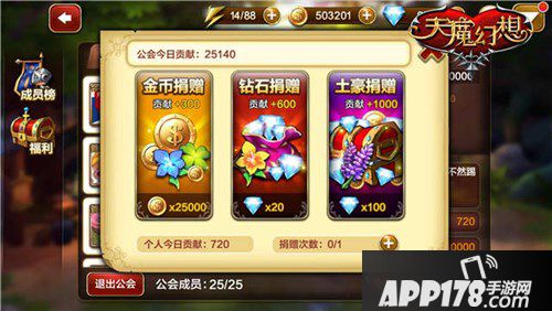 完成1次钻石捐赠后,玩家得到的捐赠值就可以在公会中领取十分合算的1000玩家经验,瞬间提升经验值。再加上自己做日常任务获取的贡献,慢慢积累以后还可以领取心仪的公会里福利。所以,公会中的玩家经验一定要记得兑换!