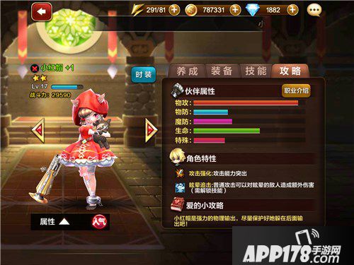 小红帽:属于中强的物理攻击伙伴,但相比其他输出伙伴,小红帽从属性上算不过的。作为一位后排实力射手,突出的物理攻击,极高的物理攻击成长。是玩家必培养角色之一。