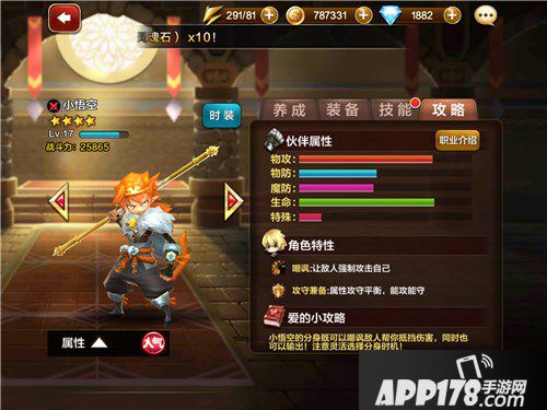 小悟空:被誉为“王牌物理近战”角色,能攻能守、能抗能打,小悟空的主动技能与合体技能兼备伤害与控制,尤其是“真假猴王”可谓是神技中的神技,这在分担近战伤害的要求上功不可没。其次,“大闹天宫”也是非常重要的合体技能,既可造成范围多次伤害,又可击退威胁强的敌人,给自己调整的空间。是位非常强劲的战士。