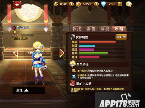 点评:莱戈拉斯是一位物理伤害十分突出的角色,能禁锢、击退、眩晕控制敌人,从莱戈拉斯的属性上看,该角色的生命成长非常不错。除了以上有优点外,莱戈拉斯的防御并不尽人意,不过只要在肉盾的保护下,并不会吃太大的亏。