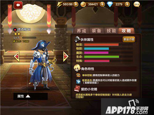 虎克船长拥有多个单体控制技能,主要针对敌人的主力进行控制,是一个相当难缠的家伙。虎克的物理攻击和生命值非常的突出,适合做前排输出和承担阵容受到的伤害。