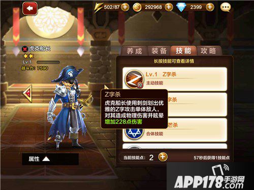 【主动】<Z字杀>虎克船长使用刺剑划出优雅的Z字攻击单体敌人,对其造成物理伤害并眩晕。
