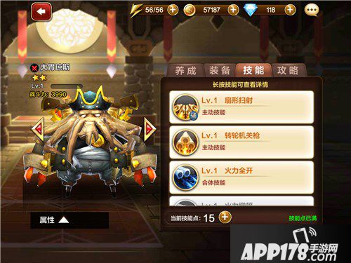 大胃琼斯的技能以高物理伤害和额外伤害为主。两个主动技能“扇形扫射”与“转轮机关枪”,都是给敌人致命一击,但一个是造成额外伤害,一个是降低敌人的攻击力。被动技能“乘胜追击”和带有沉默效果的小伙伴配合打出,普通攻击对敌人造成额外的伤害。