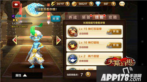 灯神是魔法攻击型伙伴,他的主动技能“神灯百裂拳”可以将攻击范围内的敌人击晕,不过需要注意的是,他的击晕效果是有2秒钟的延迟。这既是他的劣势、也是优势。劣势是在这两秒钟内,敌人可能会走出攻击范围,而优势在于,配合其他小伙伴的群体眩晕技能,灯神可以无缝的连续眩晕。所以,灯神最好是配合肥龙、德古拉这种有群体眩晕的伙伴来使用,让敌人完全没有还手之力。