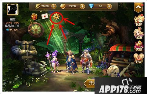 首先在主界面中,点击图中红圈标注的齿轮图标,即可进入游戏设置界面。