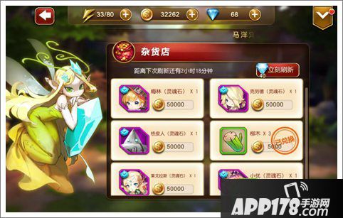 每隔一段时间商店的出售商品会刷新,如果没有你想要的商品,你也可以花费一点钻石直接进行刷新。在此小编提醒各位,商品比较贵,大家量力而买,不要因为被黑店坑了都没钱升级技能哟~