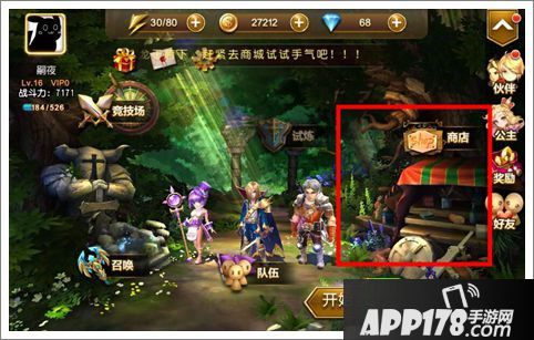 首先商店在哪里呢?就在主界面中如图标注的地方,有的时候名字会隐藏起来,这时只要点击一下屏幕就能看到啦。