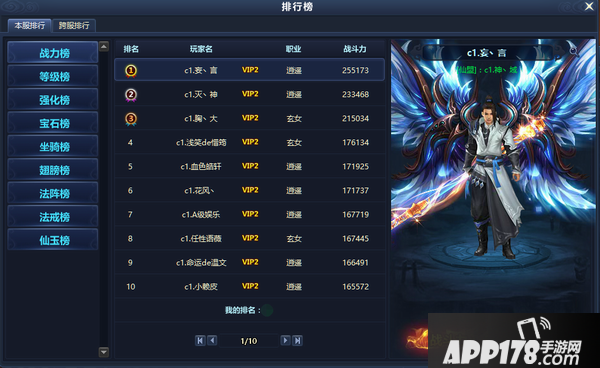 1、玩家可通过排行榜查看本服玩家的战力、等级、强化等排行名次。