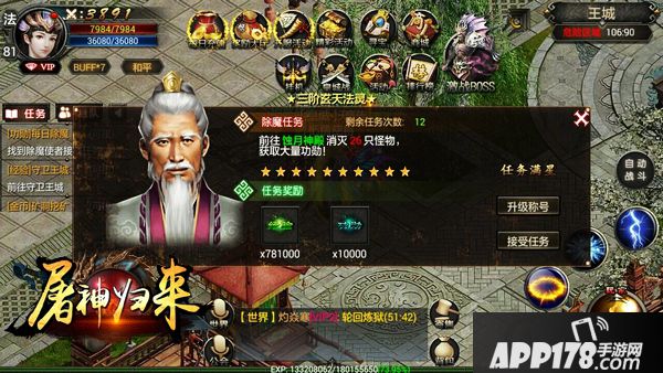 第三个获取经验的地方就是功勋除魔,除魔任务可以使用金币刷新任务等级,主要获取经验和功勋。