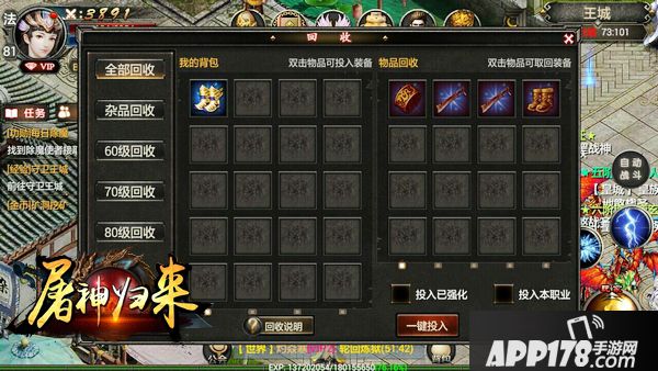 装备回收是一个非常爽的办法,前期升级尤为快速: