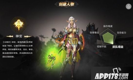 神官:殷海萨通过世界树创造了精灵,让他们来侍奉水之女神。精灵族聪明灵活,攻击、移动、施法速度都很快,拥有强大的团队回复技。