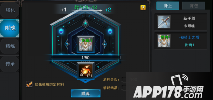 F.附魂:通过附魂,可以是的装备提升他的主要加成属性,相应的附魂等级越高属性加成越多。