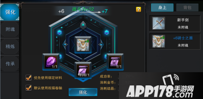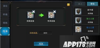 传承:装备通过传承可以把其附加的强化属性传承到另一件装备之上。