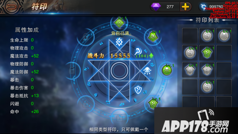 B.符印种类:生命上限、物理攻击、魔法攻击、物理防御、魔法防御、命中、闪避、暴击、暴击抵抗、暴击伤害,这10种类型。