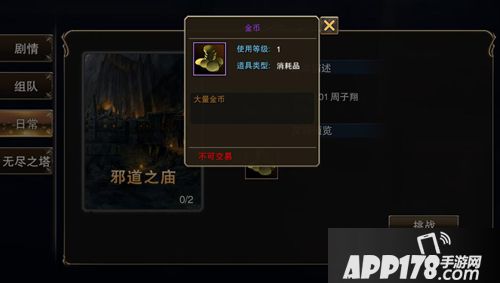 挑战类-副本-日常-【邪道之庙】:副本要求等级23级,挑战成功后可以获得大量金币。