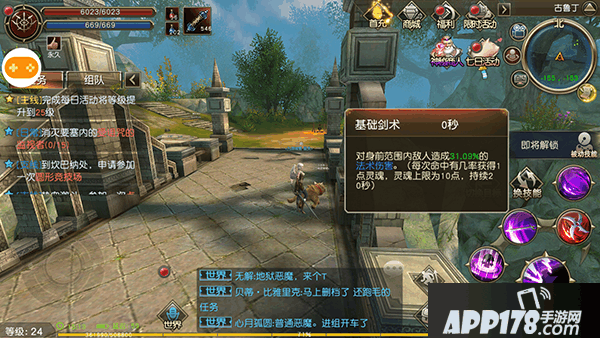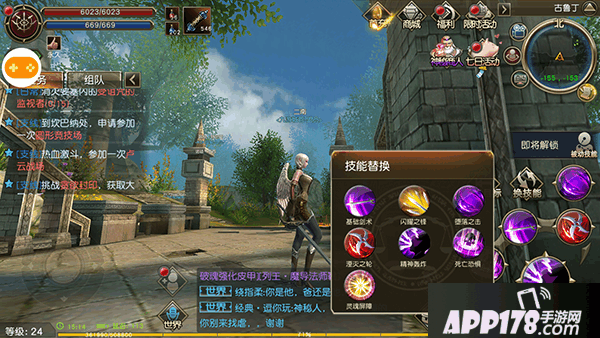 随着升级玩家可以学习到一些技能,技能板块显示出来有六个键,一共可以配置12个技能,“换技能”按键可以切换到另外一个版面。