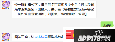 【答题格式为da 答案,例如答案是爱消除,则回复“da爱消除”答题】