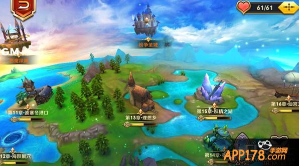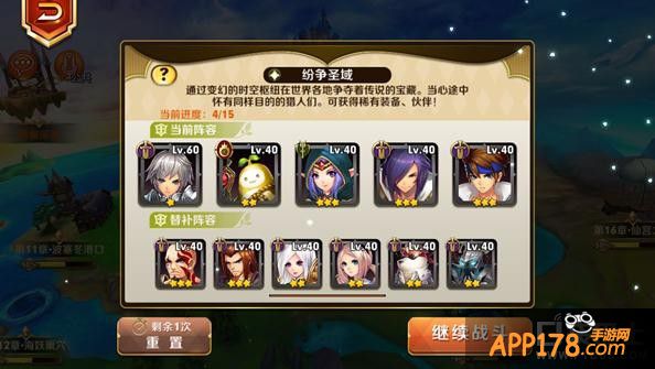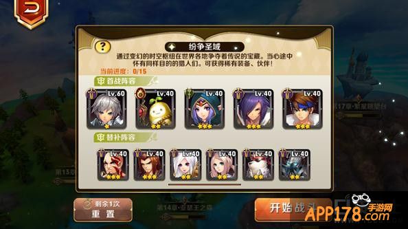 留意大陆上方的最右的“浮空岛”是纷争圣域的入口,王者之塔在通关第五章后可以进入。和普通的关卡不同,王者之塔的战斗,可以上场的小伙伴不只5人,而且达到等级要求(5级以上的小伙伴)的角色都能够出场战斗