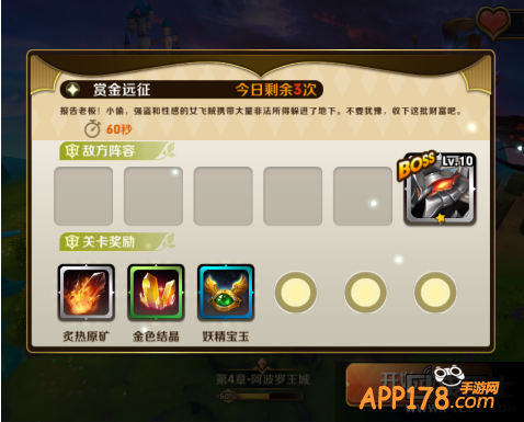 在赏金远征中,玩家有60秒的时间去击杀Boss,Boss不会主动攻击玩家。玩家对boss造成的伤害越多,获得的奖励也就越多,成功击Boss后会获得额外的击杀奖励。所以建议玩家选用输出伤害较高的角色来组成队伍哦。