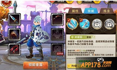 冲锋斩:冲锋至一名地方目标身前,连续突然刺造成物理伤害并为自己回复生命值;