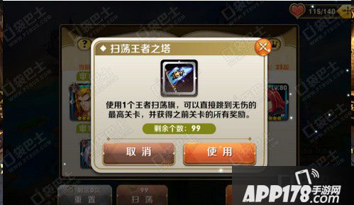 王者之塔每天可参与一次,当该层塔三星通关后,将开启本层塔的扫荡功能,免除重复推塔的负担,让你轻松拿奖励。