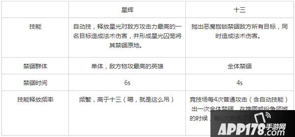 技能方面,由于两个角色的定位不太一样。星辉的定位是攻防兼备,而十三的定位则是AOE爆表的输出角色!所以其他的技能可比性不强,这里我们只对比下双方的禁锢技能。