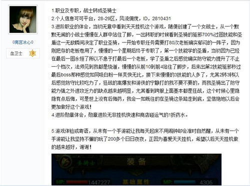 以下是进阶圣骑士的大神心得分享——