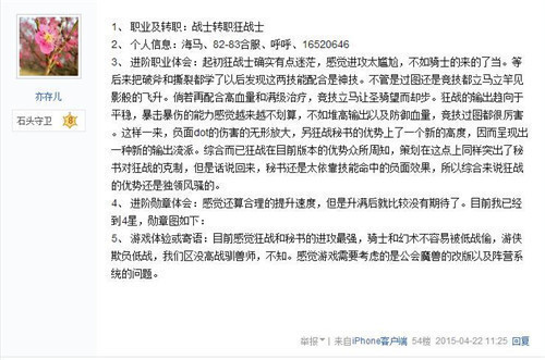 以下是有经验的大神们对于进阶狂战士的体会——